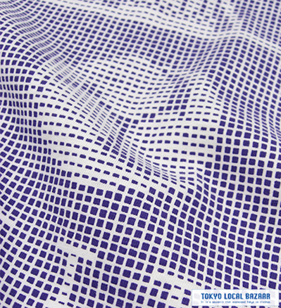 洋型紙といわれる型染め用の紙に2mmほどのマス目を丹念に彫り込みました。神輿、左三ツ巴、投網、三社祭を象徴する図形を表現しています。