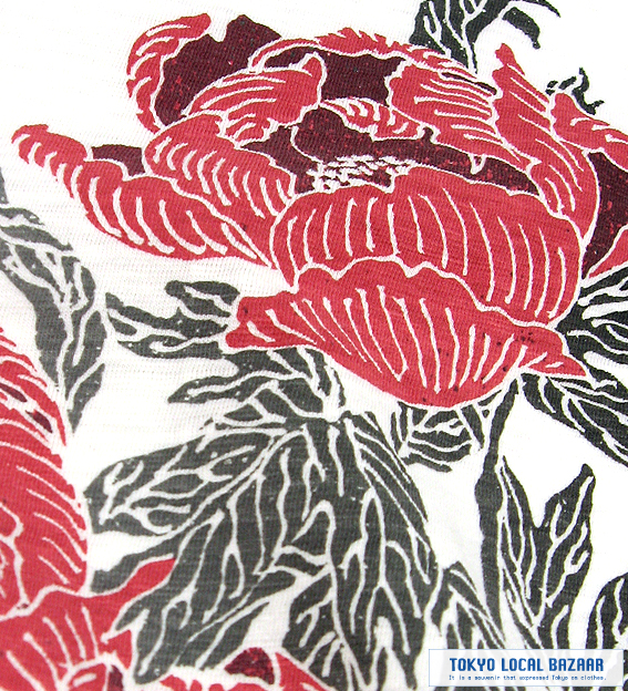 とはいえ、それだけの色数分のスクリーンを用意したらものすごい工賃になってしまいます。この「姿芍薬」はそんな中、ぎりぎりまでスクリーンの数を減らしながらも、多色プリントの贅沢感を表現しているのです。