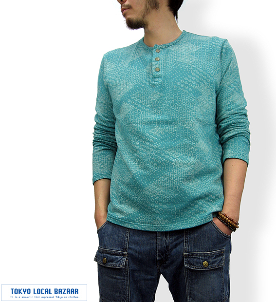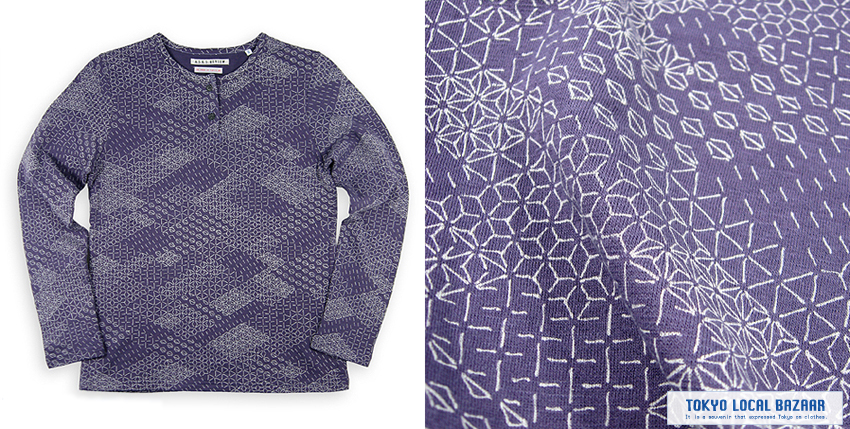 「変わり麻の葉文様」総柄シリーズ、第一弾はヘンリーネックの登場です。