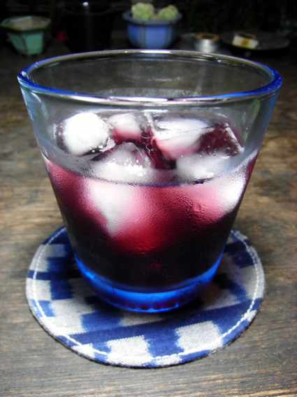 想像以上にしっかりと色が出ていて、中の実が見えないくらい濃い紫色に仕上がりました!色の感じをお伝えしたく、画像はグラスショットです。