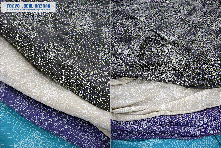 この「変わり麻の葉総柄」、素材は肌にあたる面を起毛せずパイル状の感触が気持ち良いミニ裏毛と、非常に薄く軽やかなガーゼ天竺にプリントしました。