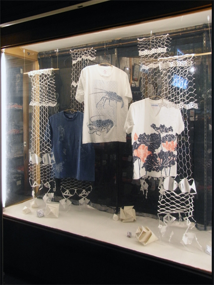 ところで、2009年夏のウィンドウディスプレイが完成しました!(世間ではもう秋の飾りになっている?)お盆休みに入る前の締めくくりの仕事として飾りました。基本的に去年と代わり映えしないのですが、今年は折り紙の貝殻も加わり、より海の風景を表現出来たと思います。