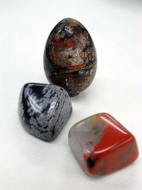 白地に赤っぽい模様の石は「ブレシエイテッドジャスパー」