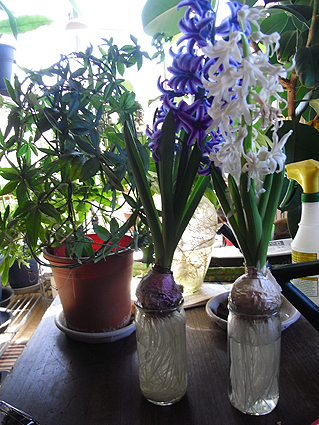 桜の咲く前、民家の庭先からはジンチョウゲの香りが漂い、僕の部屋ではヒヤシンスの香りでいっぱいでした!今年は5個の球根を水栽培したのですが、咲きそろうと本当に香りに迫力がありましたよ。帰宅の際、部屋のドアを開けると春が溢れ出て来ていました。