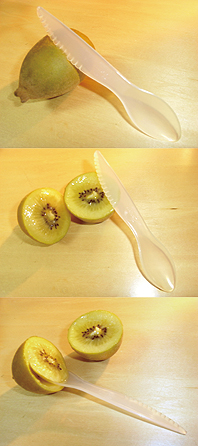 このスプーン、ナイフもまな板もいらず手を汚さずにキウイを手軽に食べさせてくれる優れものだったのです!