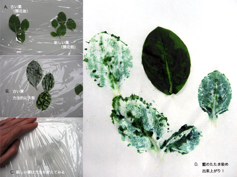 A.古い葉(開花後)と新しい葉(開花前)の2種類を実験してみます。