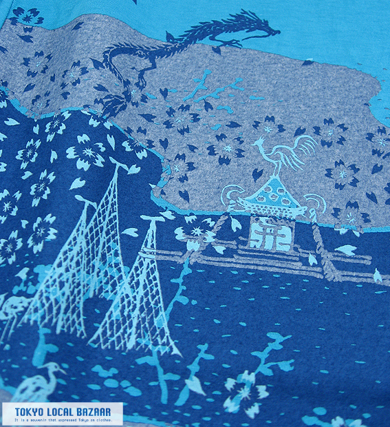 こちらの柄は先だって発表させていただきましたバンダナと同じ要素で構成されていますが、身につけるTシャツという事を考え、お召しになって素敵なものにと練りに練った絵面に仕上げております。