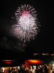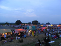 河原の土手の急斜面に踏ん張るようにしゃがみこむのは少々疲れましたが、開けたパノラマの中央に上がる打ち上げ花火は圧巻でしたよ。