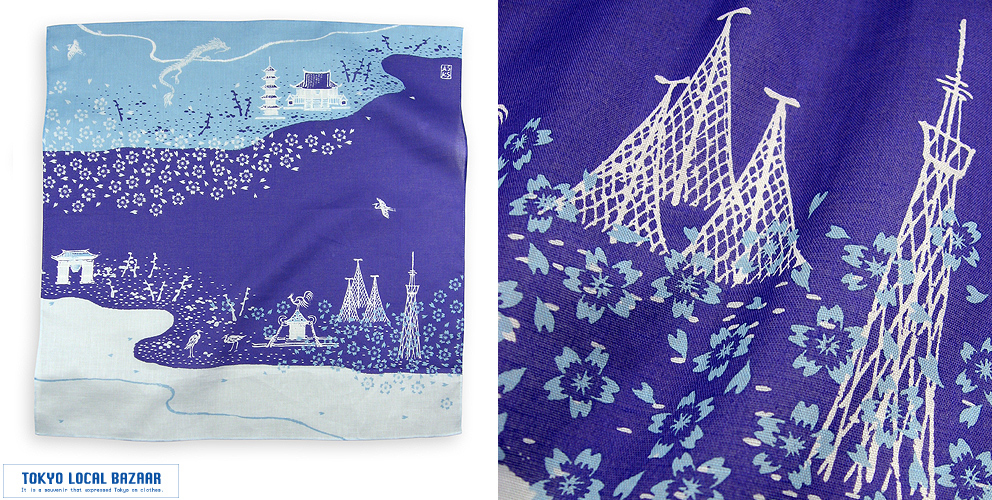 以前、浅草寺/五重塔/雷門/隅田川/桜をモチーフに「浅草風景」というバンダナとTシャツがありました。